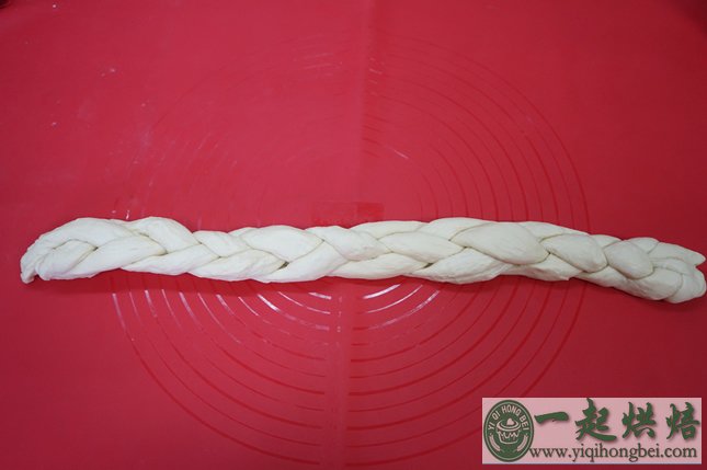 9. 编成四股辫更加立体,步骤有些多,可以看我以前的辫子面包食谱,或者网上搜索相关视频;
